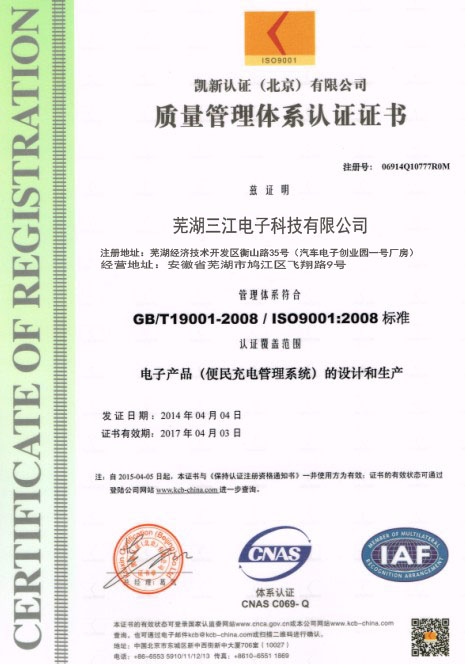 蕪湖三江電子科技有限公司,位于美麗的江城蕪湖,是一家目前國(guó)內(nèi)專業(yè)從事智能式自助產(chǎn)品的研發(fā)、生產(chǎn)、銷售及自助產(chǎn)品服務(wù)為一體的科技型企業(yè)。主要經(jīng)營(yíng):電動(dòng)車充電站,電動(dòng)車充電站配件,小區(qū)充電站,便民充電站、投幣充電站、手機(jī)支付充電站、刷卡充電站、智能充電站、智能充電系統(tǒng)等。歡迎大家來公司參觀考察!公司秉承“顧客至上,銳意進(jìn)取”的經(jīng)營(yíng)理念,堅(jiān)持“客戶至上”的原則為廣大客戶提供優(yōu)質(zhì)的服務(wù)。歡迎廣大新老客戶惠顧!